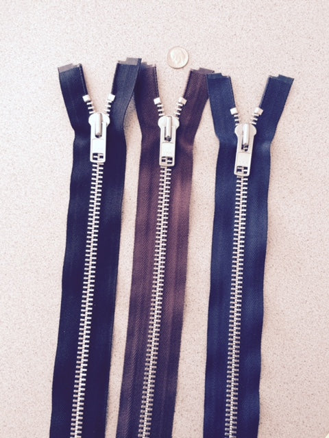These aluminum zippers have silver-colored teeth and are perfect for motorcycle jackets! Note: these zippers are aluminum, not nickel - aluminum is the industry standard and is a lot less expensive than nickel and is very durable.