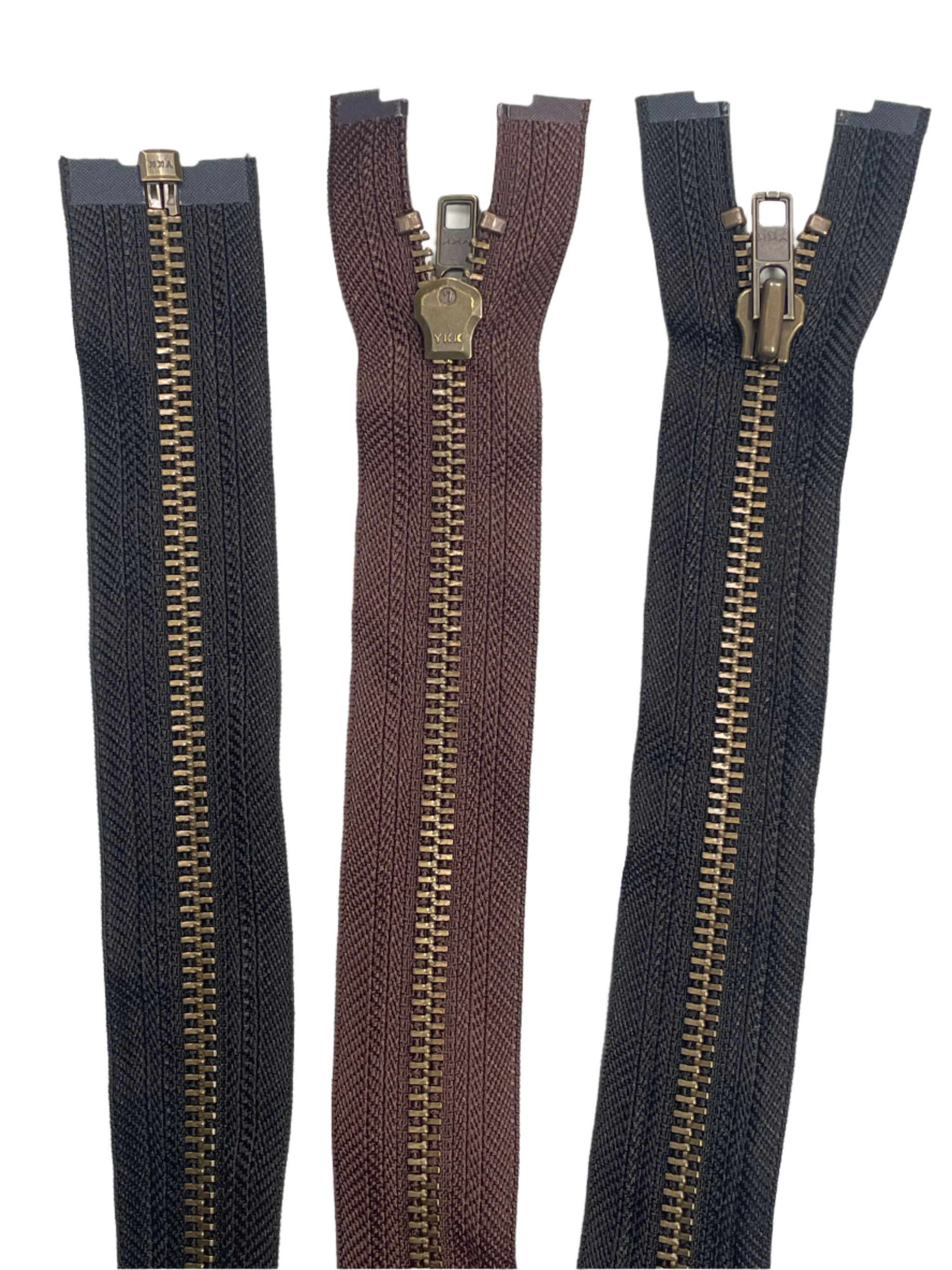 YKK ANTIQUE BRASS, ANTIQUE NICKEL, & oXIDIZED BLACK Jacket Zippers
